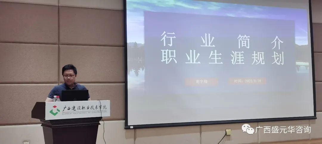 8月28日下午,受廣西建設(shè)職業(yè)技術(shù)學(xué)院管理工程學(xué)院邀約,廣西盛元華總經(jīng)理助理、總工程師謝宇翔出席參加了管理工程學(xué)院2023級(jí)造價(jià)班全體新生的開(kāi)學(xué)第一課,并在課上向新生們做了關(guān)于職業(yè)培養(yǎng)的專(zhuān)業(yè)教育。