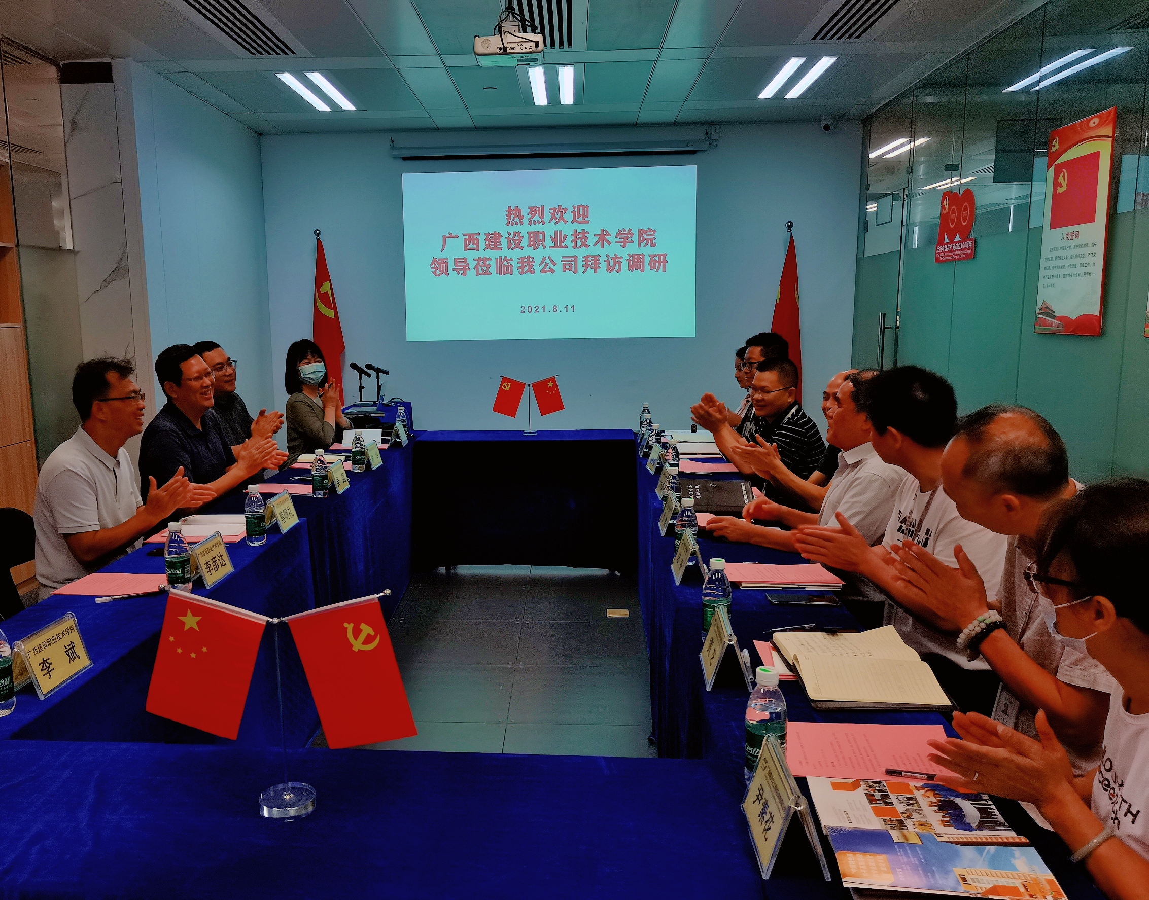 為進一步深化產(chǎn)教融合,促進校企合作全面發(fā)展,8月11日下午,由廣西建設職業(yè)技術學院黨委副書記、院長吳昆帶隊,一行共6人赴我公司拜訪調(diào)研。